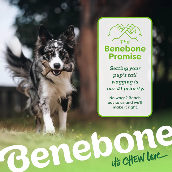 Inspired by your dog’s love for sticks — but better. The Benebone Maplestick is a tough chew toy flavored with REAL maple wood, offering all the fun of a stick without the splinters or mess.