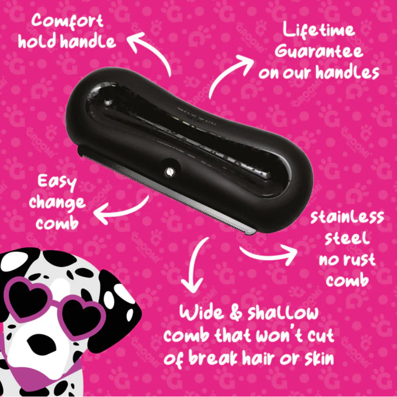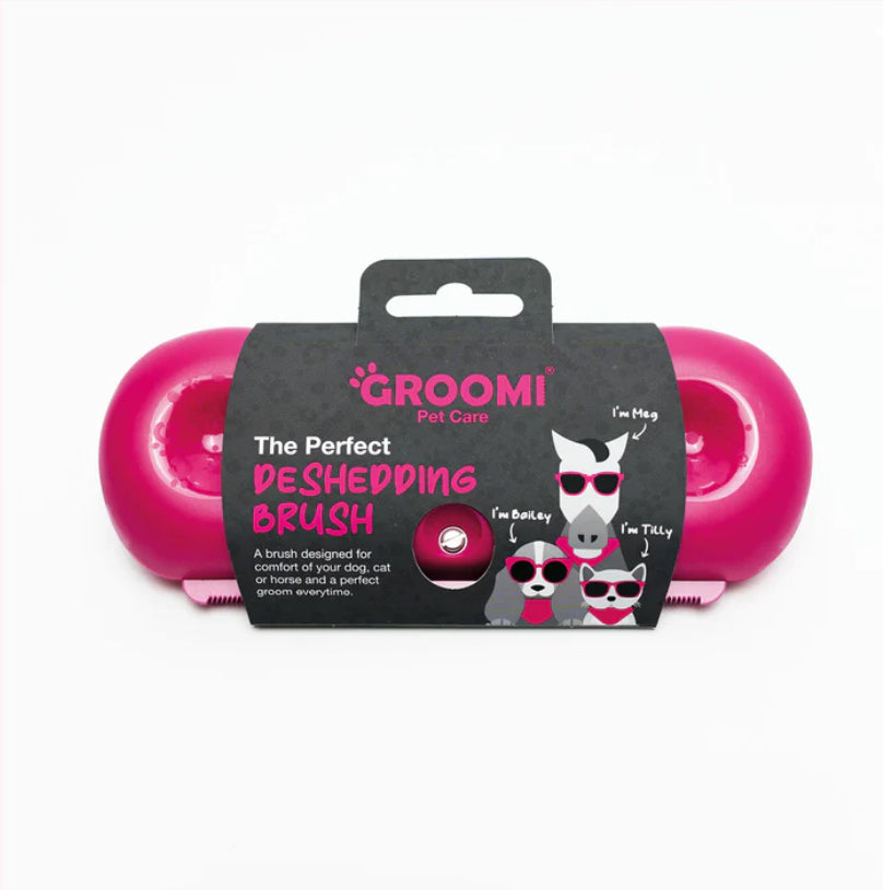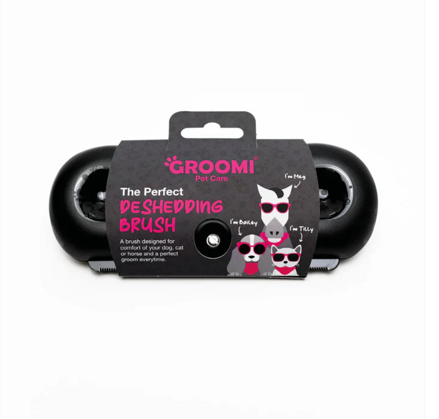 The Groomi deshedding brush is designed to guarantee gentle and effective deshedding for your pet. Featuring a wide, shallow comb design to prevent penetration to the skin and hair breakage.