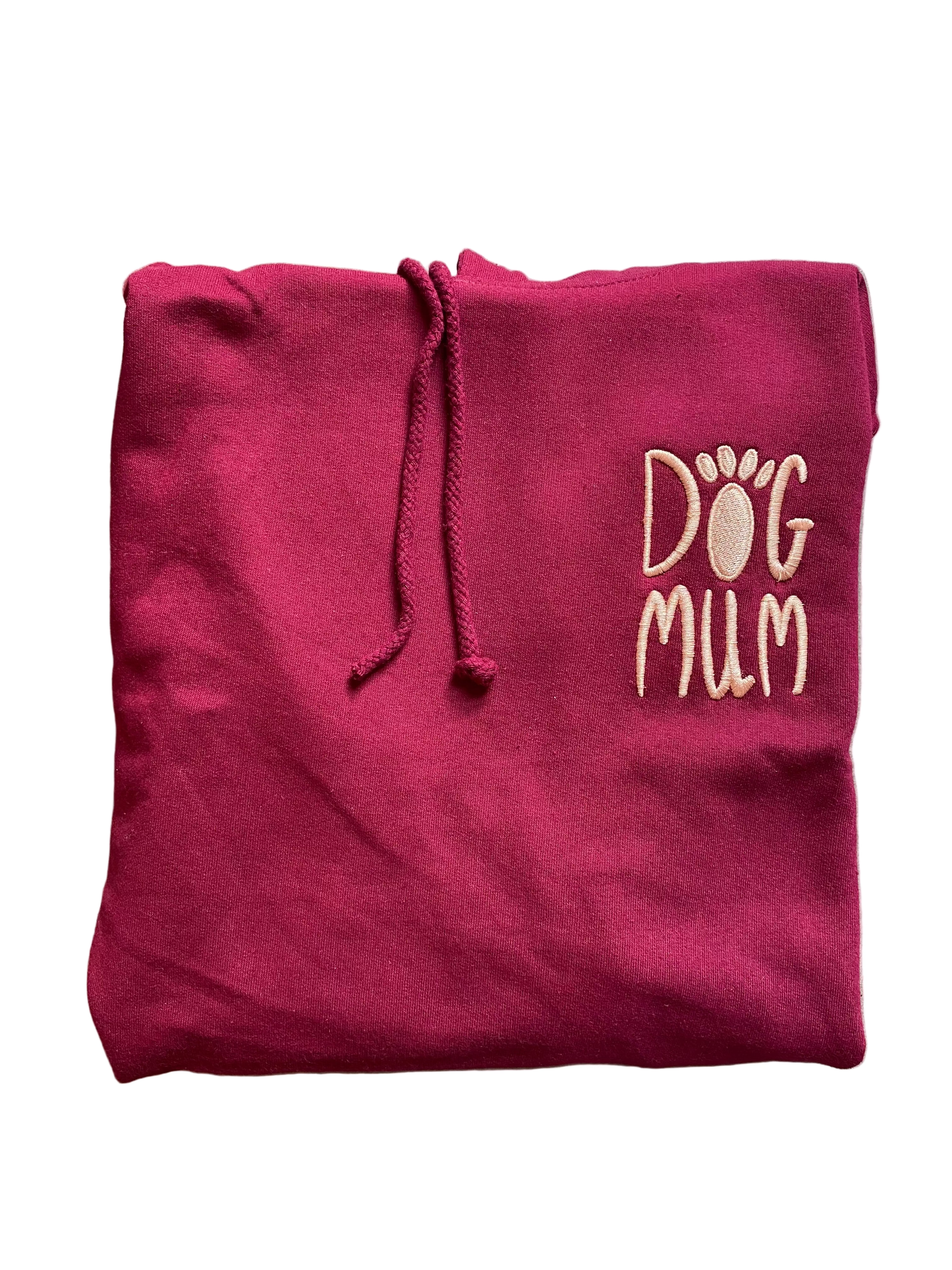 This simple and stylish classic hoodie is available in a variety of colours each season with  "DOG MUM" stitching
