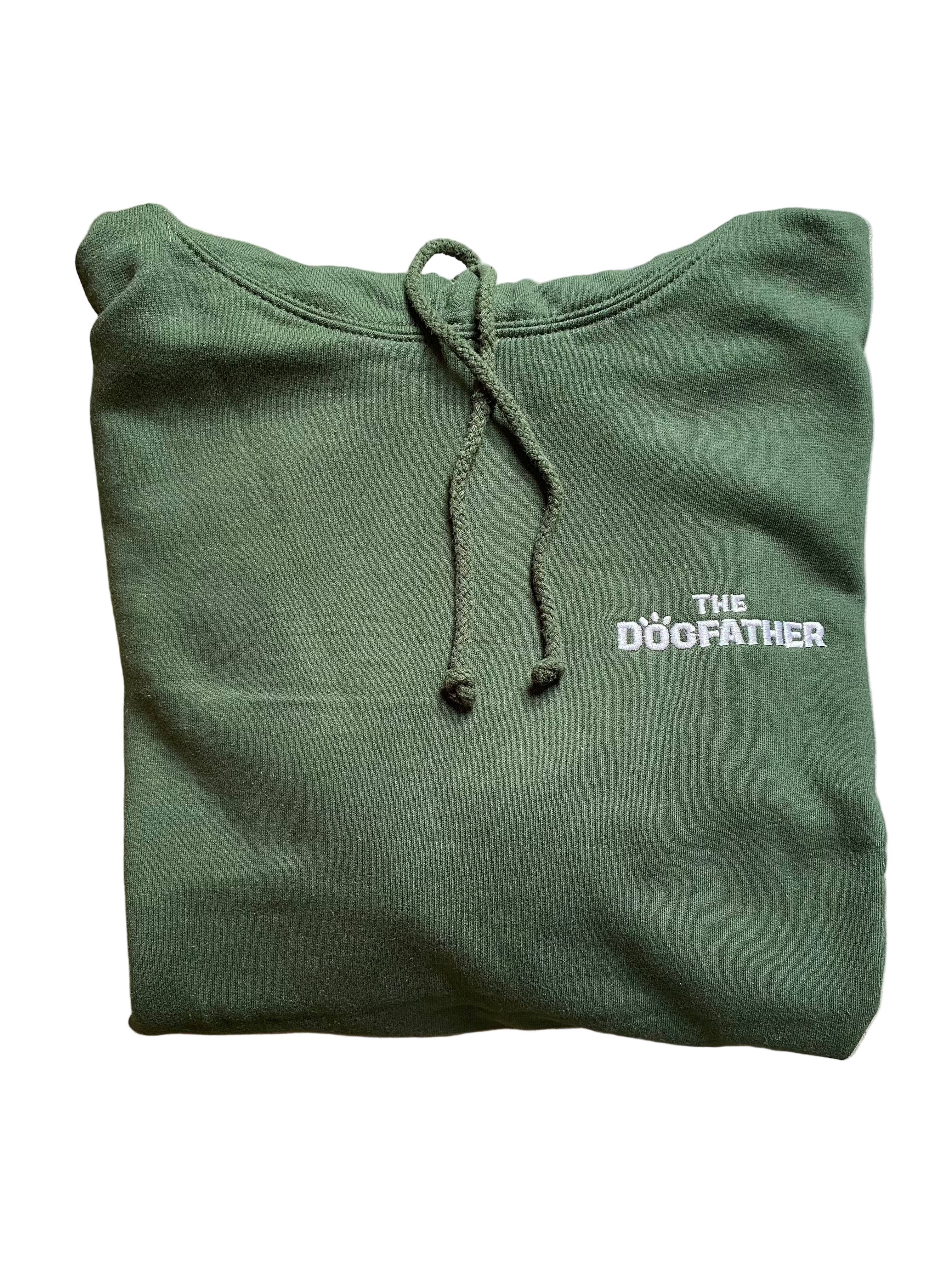 This simple and stylish classic hoodie is available in a Denim Blue with a silver "DogFather" embroidered on the chest.