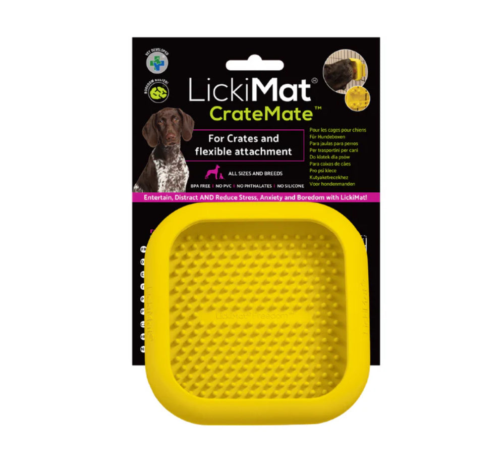 The LickiMat® CrateMate™ is the perfect stress-free, mess-free crate companion for your dog. Designed to keep your dog calm, engaged and happily distracted, it turns crate time into a more positive and relaxing experience.