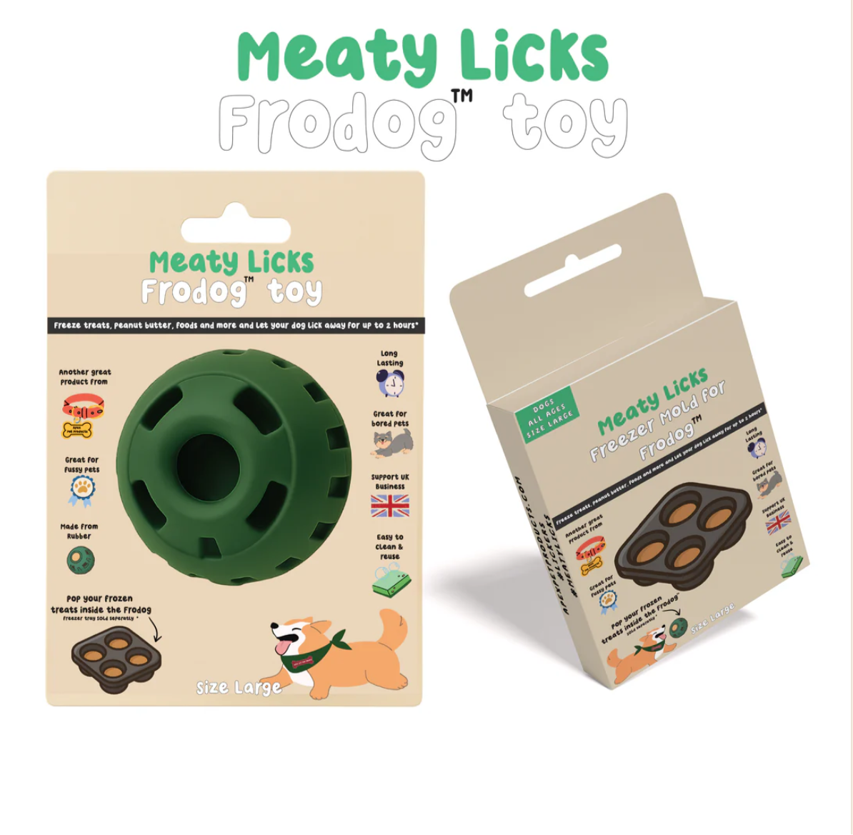 Looking for a fun, enriching way to keep your dog entertained? Meet FroDog — your pup’s new favourite toy designed for cooling, calming, and long-lasting play. Simply fill it with your dog’s favourite treat (like our Meaty Licks peanut butter), freeze it, and let the licking begin!